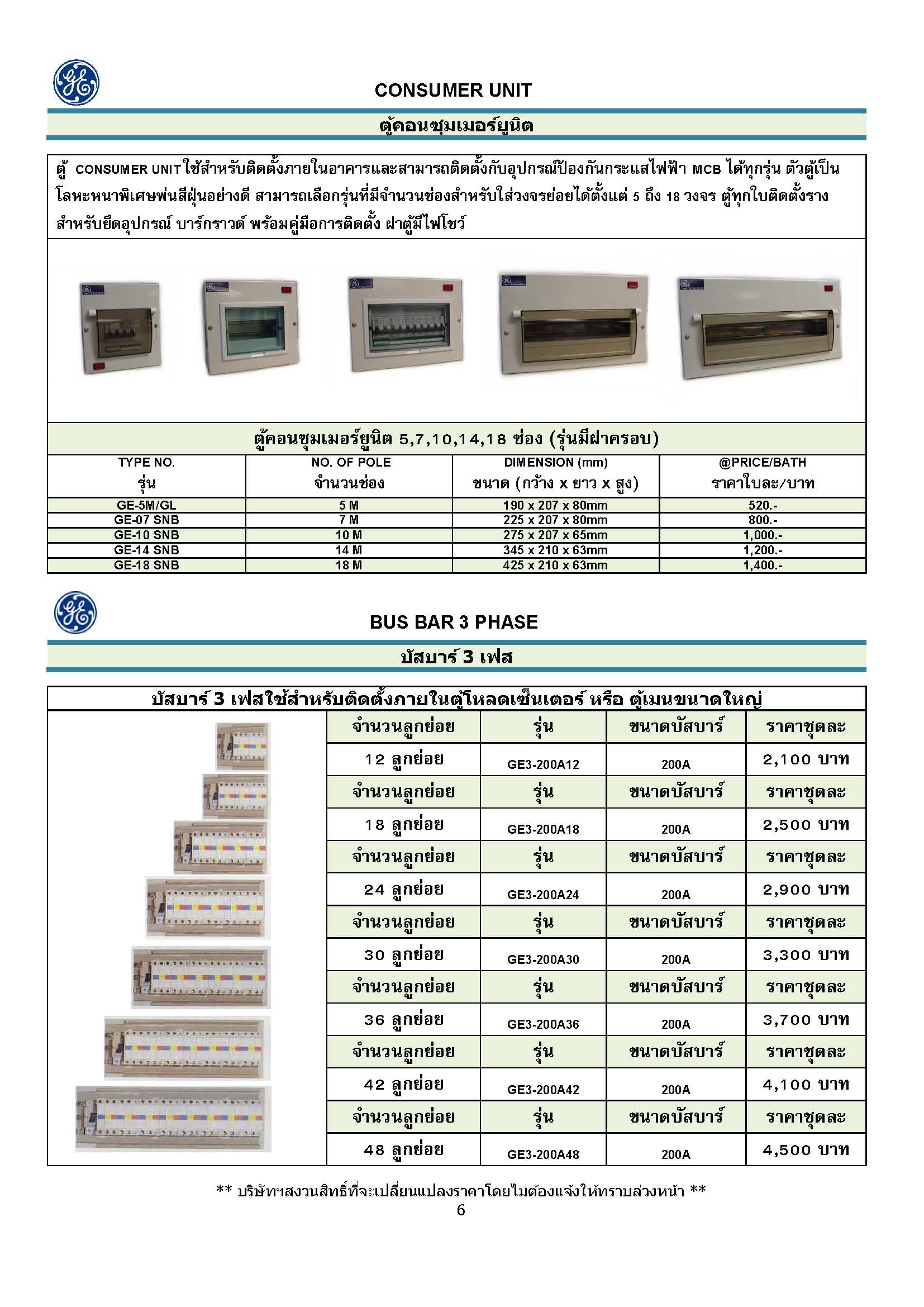 สามารถเลือกรุ่นที่มีจำนวนช่องสำหรับใส่วงจรย่อยได้ตั้งแต่ 5 ถึง 18 วงจร ตู้ทุกใบติดตั้งรางสำหรับยึดอุปกรณ์ บาร์กราวด์ พร้อมคู่มือการติดตั้ง
